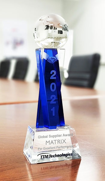 TTM Technologies Awards Matrix Electronics 2021 Global Supplier Award for Excellence